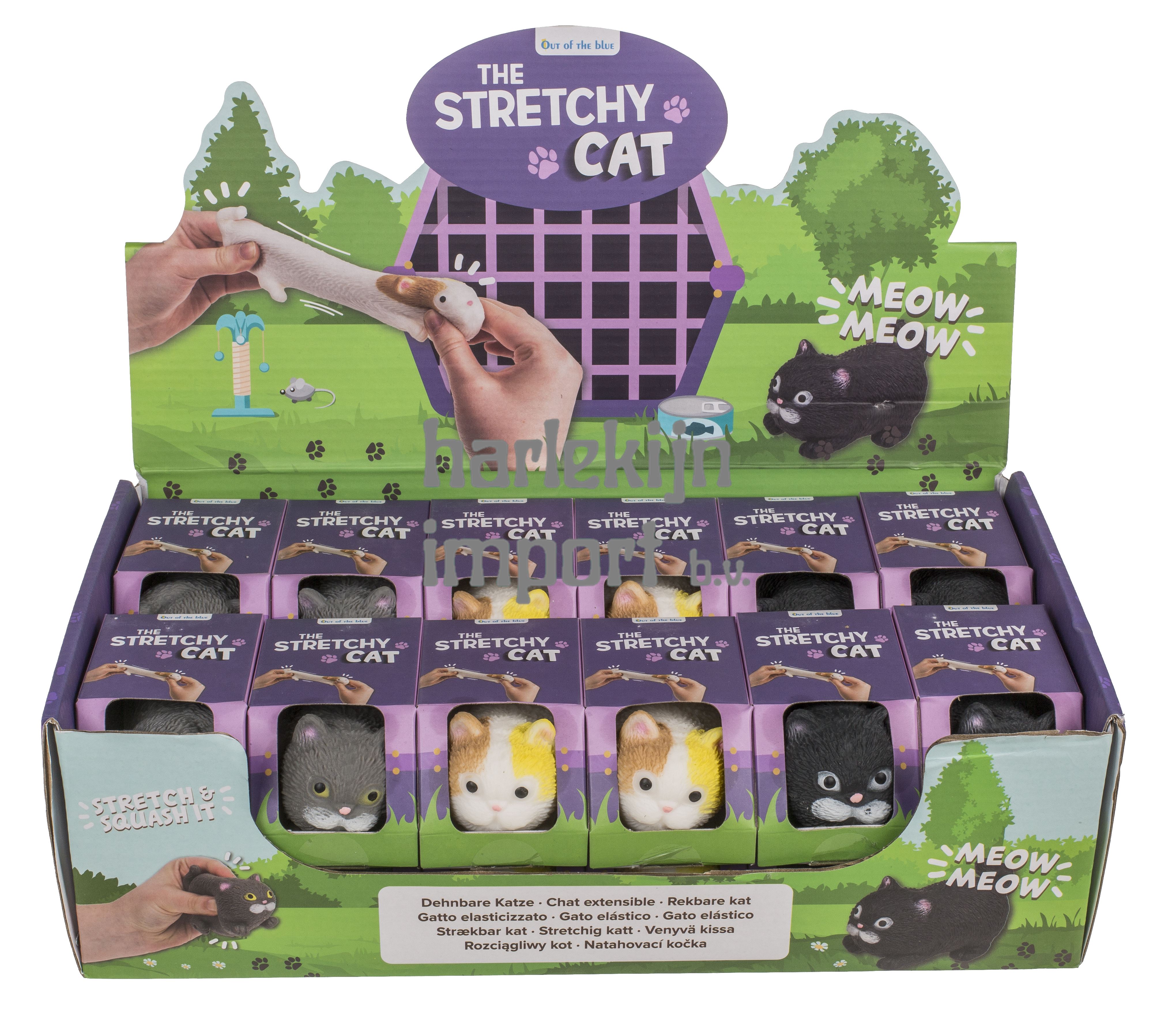 Dsp strech kat, 9 cm, 3 ass. 24 stuks in display.