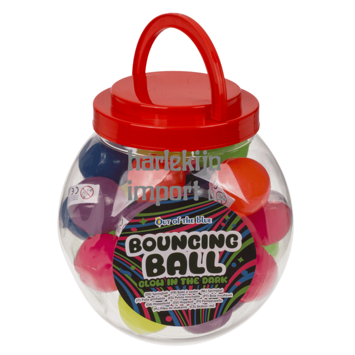DSP stuiterballen 4,5 cm. glow in the dark. 30 stuks in display. 6 assortie.