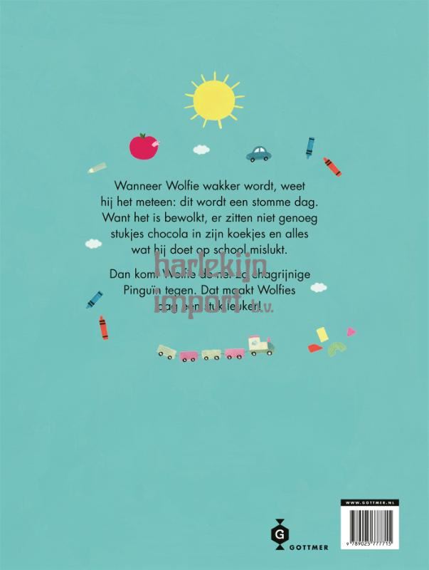 'Een leuke stomme dag' gaat over hoe een andere kijk op dingen alles lijkt te kunnen veranderen, en niemand kan daar beter bij helpen dan een vriend. Daar komt Wolfie achter in dit kleurrijke, eigenwijze prentenboek. Hij heeft namelijk last van iets wat we allemaal weleens hebben: een stomme dag... En vandaag is het wel een héle stomme dag. Althans, dat vindt Wolfie, want van een afstandje lijkt het wel mee te vallen. Niemand op school begrijpt hoe hij zich voelt. Of toch wel? Pinguïn heeft ook een niet al te beste dag. En samen alles stom vinden is eigenlijk best leuk. Met ontzettend veel droge humor (en een paar heel goed getroffen chagrijnige gezichtjes) laat de Italiaanse prentenboekenmaker Marianna Coppo zien hoe de bewolkte dag van de kleine, schattige Wolfie toch heel zonnig wordt.