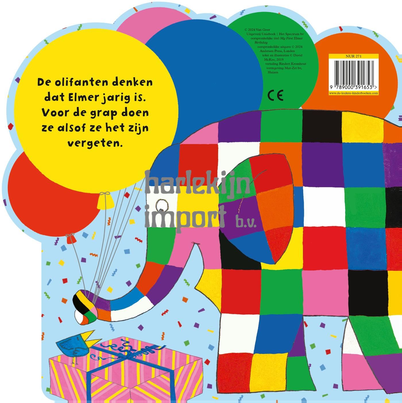 Vier feest met Elmer en zijn vriendjes De olifanten denken dat Elmer jarig is, maar voor de grap doen ze de hele dag alsof ze het zijn vergeten. Het ene na het andere dier wenst Elmer geen prettige verjaardag. Wel bakken ze een lekkere taart. Maar is Elmer eigenlijk wel jarig? Elmer is jarig is een kartonboek en prentenboek voor peuters en kleuters vanaf 2 jaar.