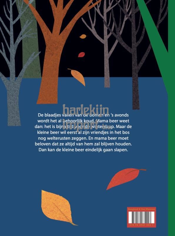 De blaadjes vallen van de bomen, en ’s avonds wordt het al behoorlijk koud. Mama beer weet dan: het is bijna tijd voor de winterslaap. Maar de kleine beer wil eerst al zijn vriendjes in het bos nog welterusten zeggen. Een heerlijk aandoenlijk boek voor het slapengaan!