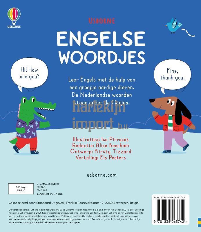 Leer Engels met de hulp van een groepje aardige dieren.De Nederlandse woorden staan onder de flapjes.