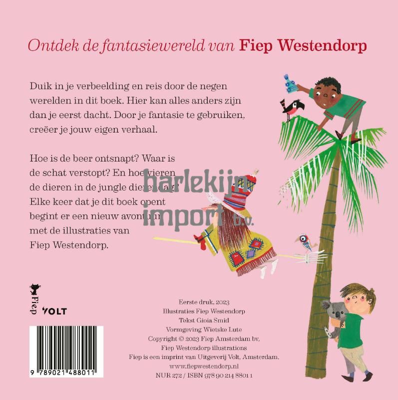 Duik in de fantasiewereld van Fiep WestendorpIn Fantasie met Fiep zijn tien werelden verzameld, allemaal gemaakt met tekeningen van Fiep Westendorp. De illustraties vormen samen een verhaal, maar niet een verhaal dat is geschreven. Het is de bedoeling dat je als lezer door je fantasie te gebruiken het verhaal zelf maakt. Zo bedenk je elke keer een eigen verhaal, met een andere hoofdpersoon in een ander avontuur.Dit boek is gemaakt om de fantasie te prikkelen en om uit te dagen. Om heerlijk je eigen fantasiewereld te ontdekken.