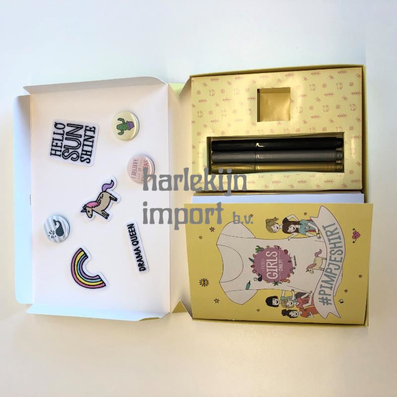 De zon schijnt, iedereen is vrolijk! In deze mooie doos vind je alles wat je nodig hebt om een eenvoudig wit shirt om te toveren tot je eigen unieke For Girls Only!-shirt. Met de strijkapplicaties, geborduurde patches, textielstiften, buttons en sjablonen maak je in geen tijd het allercoolste T-shirt voor jezelf of je BFF’s!