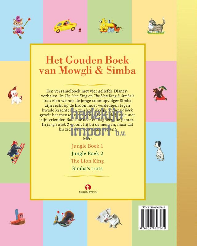 Een verzamelboek met vier geliefde Disneyverhalen. In The Lion King en The Lion King 2: Simba’s trots zien we hoe de jonge troonopvolger Simba zijn recht op de kroon moet verdedigen tegen kwade krachten in zijn koninkrijk. In Jungle Boek groeit het mensenwelp Mowgli op in de jungle met zijn vrienden Baloe de beer en Bagheera de panter. In Jungle Boek 2 woont hij bij de mensen, maar zal hij zich daar ooit thuis voelen? Met: Jungle Boek 1, Jungle Boek 2, The Lion King en Simba’s trots.
