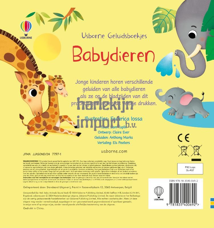 Van pinguïnkuikens en zeehondenpups tot tijgerwelpjes en babyneushoorns: in dit lieve boekje maken alle kleine dieren schattige geluiden. Met tien knoppen om op te drukken. Je gaat op bezoek in Australië om babykangoeroes en koala’s te horen, in het oerwoud hoor je de babyaapjes en op de boerderij maak je kennis met een babyalpaca en een ezeltje.