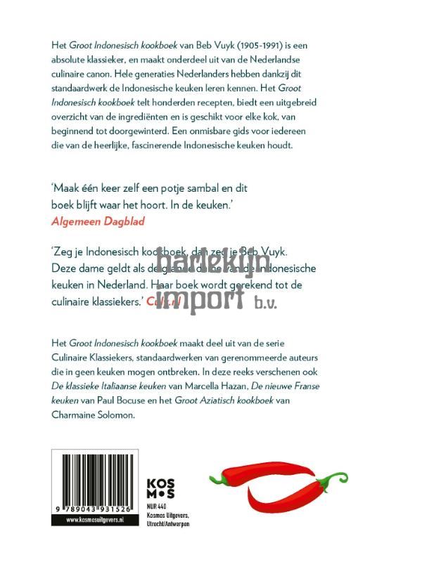 Het Groot Indonesisch Kookboek van Beb Vuyk is al decennialang het kookboek over de Indonesische keuken, voor beginner en gevorderde. Het Groot Indonesisch Kookboek telt honderden recepten voor de lekkerste Soto Ajam, spekkoek en babi ketjap, maar ook tahoe bakso en eend met Balinese kruiden vind je in dit allesomvattende, onmisbare kookboek. Hele generaties Nederlanders hebben dankzij deze klassieker van Beb Vuyk de Indonesische keuken leren kennen. Het Groot Indonesisch Kookboek biedt naast honderden gevarieerde recepten ook een uitgebreid overzicht van de ingrediënten. En door de handige tips van Beb Vuyk is dit kookboek geschikt voor elke kok. ‘Met een handvol ingrediënten bereid je een gamma aan authentieke gerechten. Een must-have.’ Algemeen Dagblad