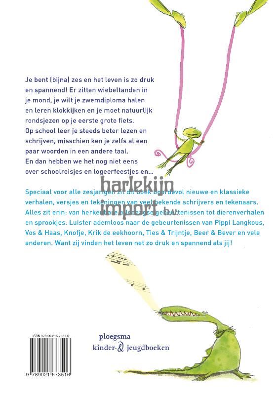 Speciaal voor alle zesjarigen zit dit boek boordevol nieuwe en klassieke verhalen, versjes en tekeningen van veel bekende schrijvers en tekenaars.