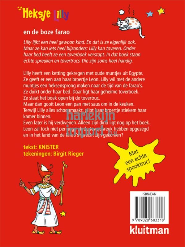 Lilly’s broertje Leon heeft haar geheime toverboek gevonden en hij heeft zichzelf naar het oude Egypte gehekst. Alsof dat nog niet erg genoeg is, heeft hij daar de machtige farao tot zijn vijand gemaakt… Snel reist Heksje Lilly achter haar broertje aan om hem te redden. Lukt het haar om op tijd een slimme truc te verzinnen of wordt Leon voor eeuwig in de piramide opgesloten? Heksje Lilly en de boze farao is een gloednieuw avontuur voor de Heksje Lilly-fans vanaf 8 jaar.