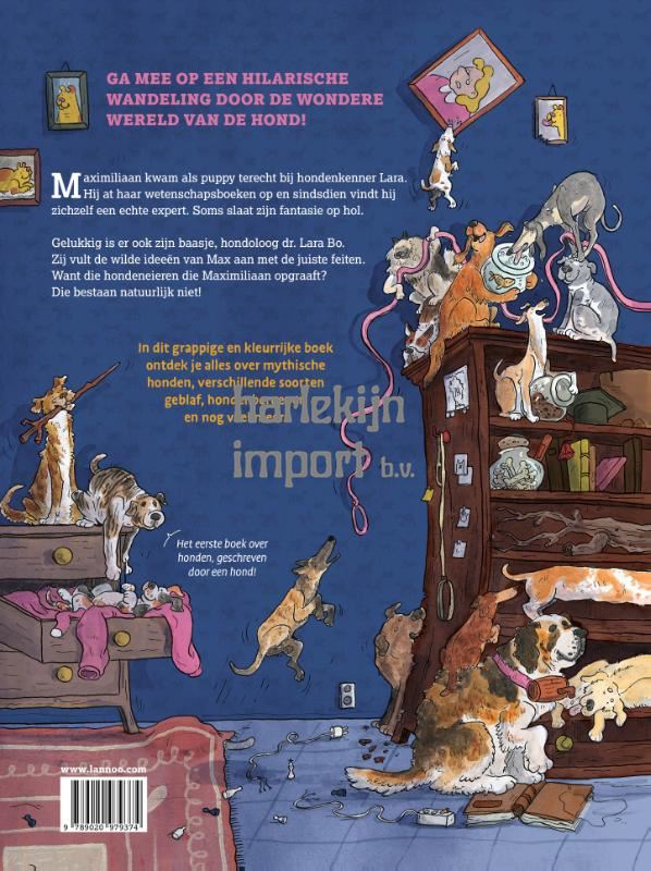 Maximiliaan, de trouwe viervoeter van hondoloog Dr. Lara Bo, neemt je mee op sleeptouw en vertelt je alles wat altijd al - en alles wat je misschien helemaal niet - wilde weten over honden. Hoe werkt de spijsvertering van honden? Wat zit er in hondenpoep? Leggen honden eieren? Wat gebeurde ook alweer bij de Big Blaf? Welke mythische honden bestaan er? Stammen honden af van dinocaniƫrs? En hoe kunnen ze praten met mensen? Hondoloog Dr. Lara Bo zorgt voor boeiende weetjes over de geliefde viervoeters. Een hilarische wandeling door de wereld van de hond!