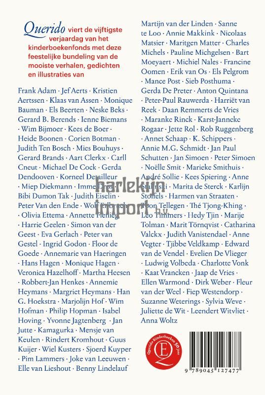 Lekker dikke feestbundel met het mooiste uit de eerste 50 jaar van Querido’s kinderboekenfonds. Met natuurlijk Pluk van de Petteflet van Annie M.G. Schmidt en Fiep Westendorp, waarmee het allemaal begon. Maar ook met Guus Kuijer en zijn Madelief en vele andere grote schrijvers en illustratoren. Van Toon Tellegen tot Annet Schaap, van Marit Törnqvist tot Fleur van der Weel. Uit hun boeken zijn de mooiste verhalen, fragmenten en gedichten gekozen om met het hele gezin van te genieten.