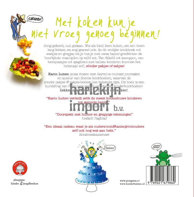 Karin Luiten (alias Koken met Karin) is culinair journalist en auteur van diverse kookboeken, waarvan de zonder pakjes & zakjes-boeken het bekendst zijn. Dit boek is een bundeling van haar twee eerder verschenen kinderkookboeken 'Lekker opscheppen!' en 'Lekker uitpakken!'.