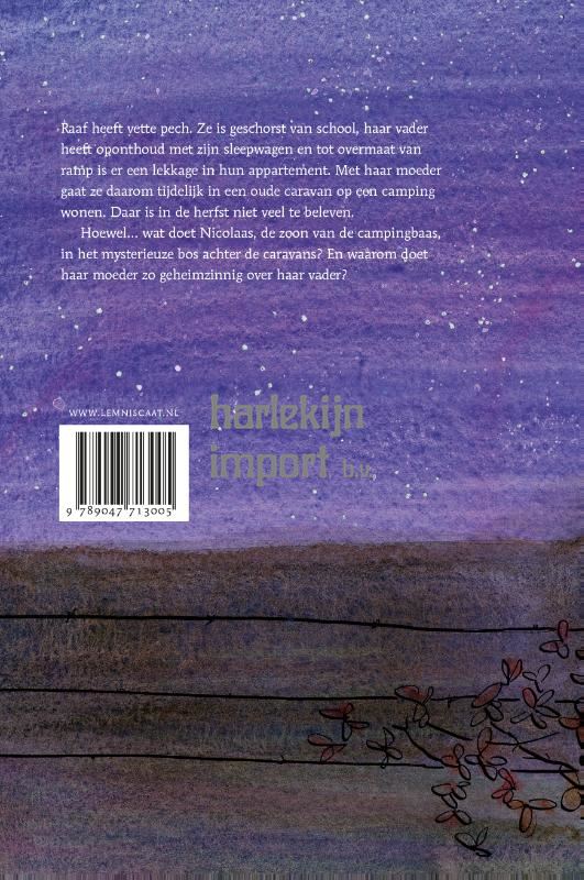 In de herfst is er niet veel te beleven – zeker niet als haar moeder gewoon moet werken en haar beste vriendin Miracle op school zit, zonder haar. Toch heeft Raaf geen kans om zich te vervelen. Want wat doet Nicolaas, de zoon van de campingbaas, in het mysterieuze bos achter de caravans? En waarom doet haar moeder zo geheimzinnig over haar vader, die maar niet te bereiken is?