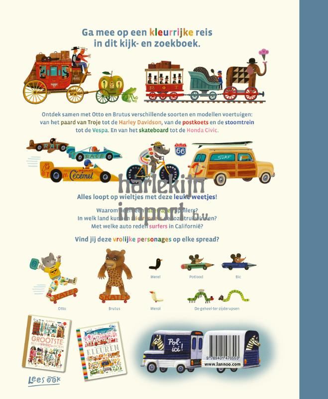 Ontdek samen met Otto en Kalme Leon alle soorten en modellen voertuigen: van het paard van Troje tot de Harley Davidson, van de postkoets en de stoomtrein tot de Vespa en van het skateboard tot de Honda Civic.