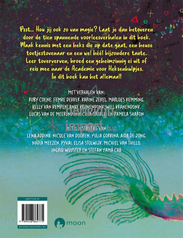 Magie... Wie is daar nou niet dol op?! In deze bundel vind je toffe voorleesverhalen met een magisch tintje. Een verhaal over de Academie voor Heksenhulpjes, over een heks die op date gaat, over een groot, geheimzinnig ei, over een heksenfestival, over het magische getal 7, en nog veel meer... Laat je betoveren door tien heerlijke verhalen, geschreven door verschillende auteurs, die worden begeleid door heel veel prachtige illustraties van verschillende illustratietalenten!