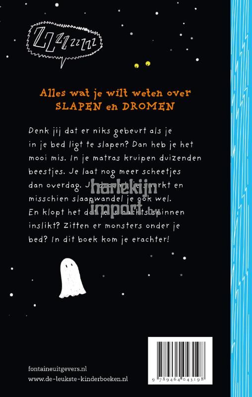 Wat gebeurt er allemaal met je als je slaapt? Hoe lang kun je zonder slaap? Waarom vergeet je vaak je dromen? Hoe slapen dieren? En welke beestjes kruipen er ’s nachts in je bed? Deze en nog vele andere vragen worden beantwoord door wetenschapsjournalist Mark Traa. In deze nieuwe en toegankelijke non-fictieserie voor kinderen vanaf 7 jaar wordt kort en bondig steeds één onderwerp uitgelicht. Met sprekende zwart-witillustraties van Wendy Panders.