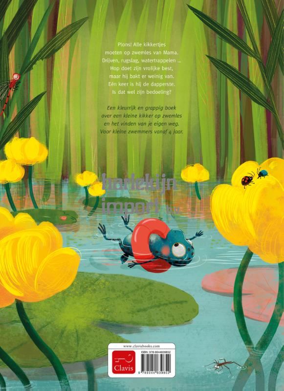 Plons! Alle kikkertjes moeten op zwemles van Mama!