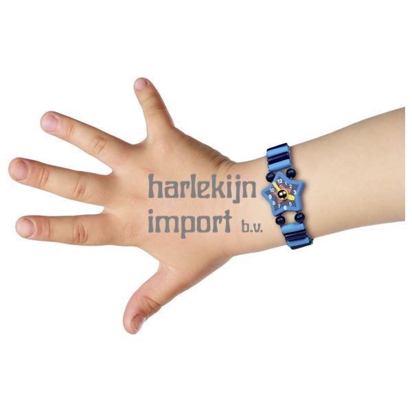 Houten horloge met elastische band en beweegbare wijzers. 4 kleuren. 2,5 cm. 3+ |