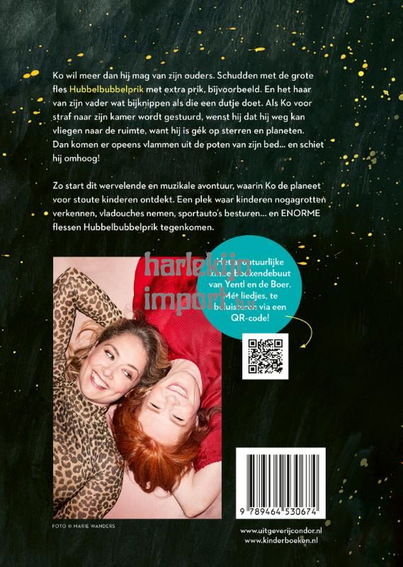 Ko wil meer dan er mag van zijn ouders. Schudden met de grote fles Hubbelbubbelprik met extra prik, bijvoorbeeld. En het haar van zijn vader wat bijknippen als die een dutje doet. Het duurt niet lang voordat Ko in de problemen zit. Hij vlucht naar zijn kamer en wenst dat hij op zijn bed naar het heelal kan vliegen, want hij is gék op sterren en planeten. Dan komen er opeens vlammen uit de poten van zijn bed... en schiet hij omhoog! Zo start dit wervelende en muzikale avontuur, waarin Ko de planeet voor stoute kinderen ontdekt. Een plek waar kinderen nogagrotten verkennen, vla-douches nemen, sportauto's besturen... en gigantisch grote flessen Hubbelbubbelprik tegenkomen. Maar wat nou als Ko toch weer naar huis wil? Samen met zijn vriendjes Gosse en Sjuul zet hij alles op alles om de laatste kans om terug te vliegen niet te missen. Met originele liedjes van Yentl en de Boer, te beluisteren via een QR-code!