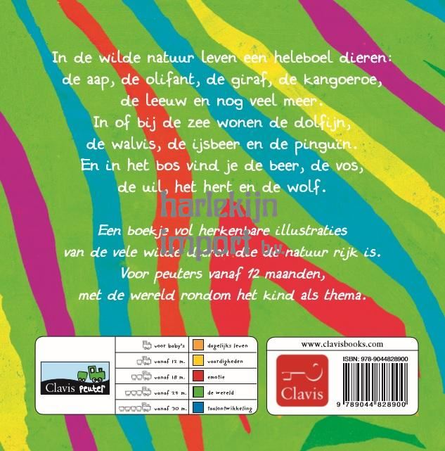 Een boekje vol herkenbare illustraties van de vele wilde dieren die de natuur rijk is. Voor peuters vanaf 12 maanden, met de wereld rondom het kind als thema