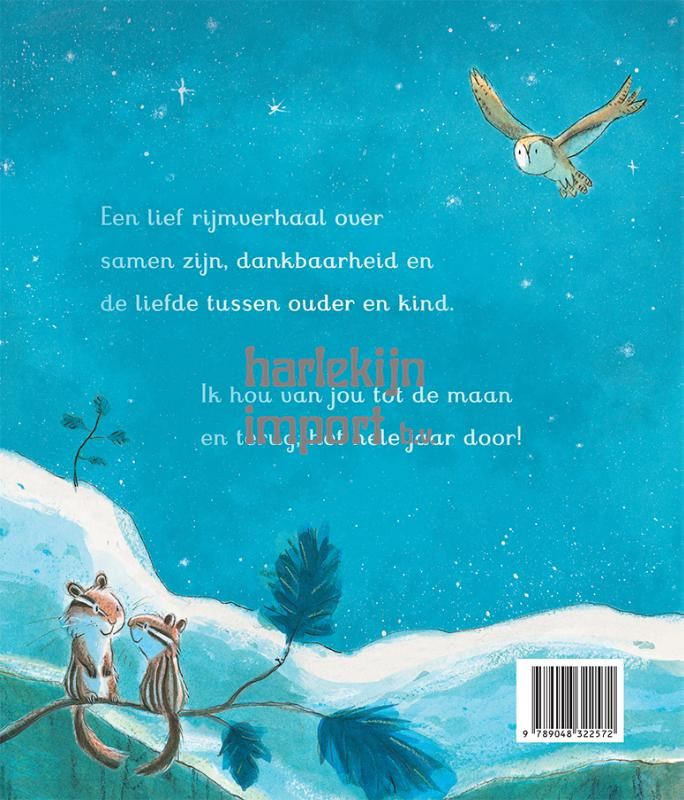 Een lief rijmverhaal over samen zijn, dankbaarheid en de liefde tussen ouder en kind. Ik hou van jou tot de maan en terug het hele jaar door!