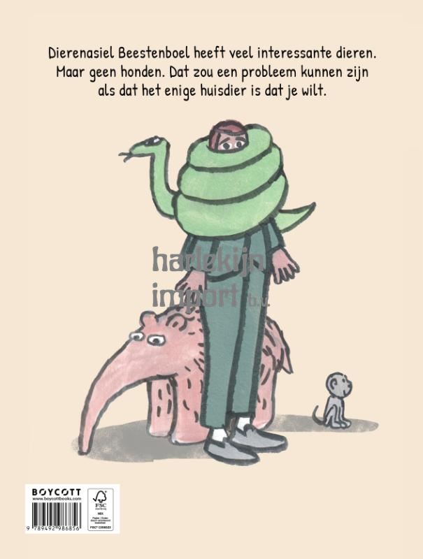 Een meisje staat te popelen om een hond te adopteren. Het Dierenasiel Beestenboel heeft een aardvarken, een hagedis, een gans, een wezel, en nog veel meer dieren. Maar hebben ze ook een puppy? Kan de asielmanager haar helpen het perfecte huisdier te vinden? Een meisje zoekt haar perfecte huisdier in een wonderlijk ongebruikelijk dierenasiel in dit komische voorleesverhaal van de maker van 'Leeuwenlessen' (Prentenboek Top 10 2025).