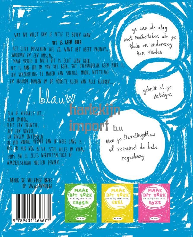 Ik zie, ik zie wat jij niet ziet en het is... is een reeks van 4 doe-boekjes voor kinderen met telkens één kleur in de hoofdrol! De kinderen worden uitgedaagd om kunst te maken met voorwerpen en materialen die ze thuis, onderweg, op school... kunnen vinden.