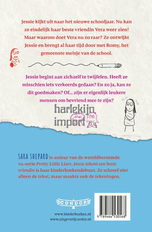 Jessie kijkt uit naar het begin van het nieuwe schooljaar, want dan kan ze eindelijk Vera weer zien. Haar allerbeste vriendin. Maar waarom doet Vera nu zo raar? Ze vindt de tekenclub waar ze altijd samen naartoe gaan opeens kinderachtig. Ze heeft het alleen nog maar over jongens. En ze brengt al haar tijd door met Romy, het gemeenste meisje van de school. Jessie begint aan zichzelf te twijfelen. Heeft ze misschien iets verkeerds gedaan? En zo ja, kan ze dit goedmaken? Of… zijn er eigenlijk leukere mensen om bevriend mee te zijn? Sara Shepard schreef de wereldberoemde YA-serie Pretty Little Liars. Dit is haar kinderboekendebuut. Ze schreef niet alleen de tekst, maar maakte ook de tekeningen.