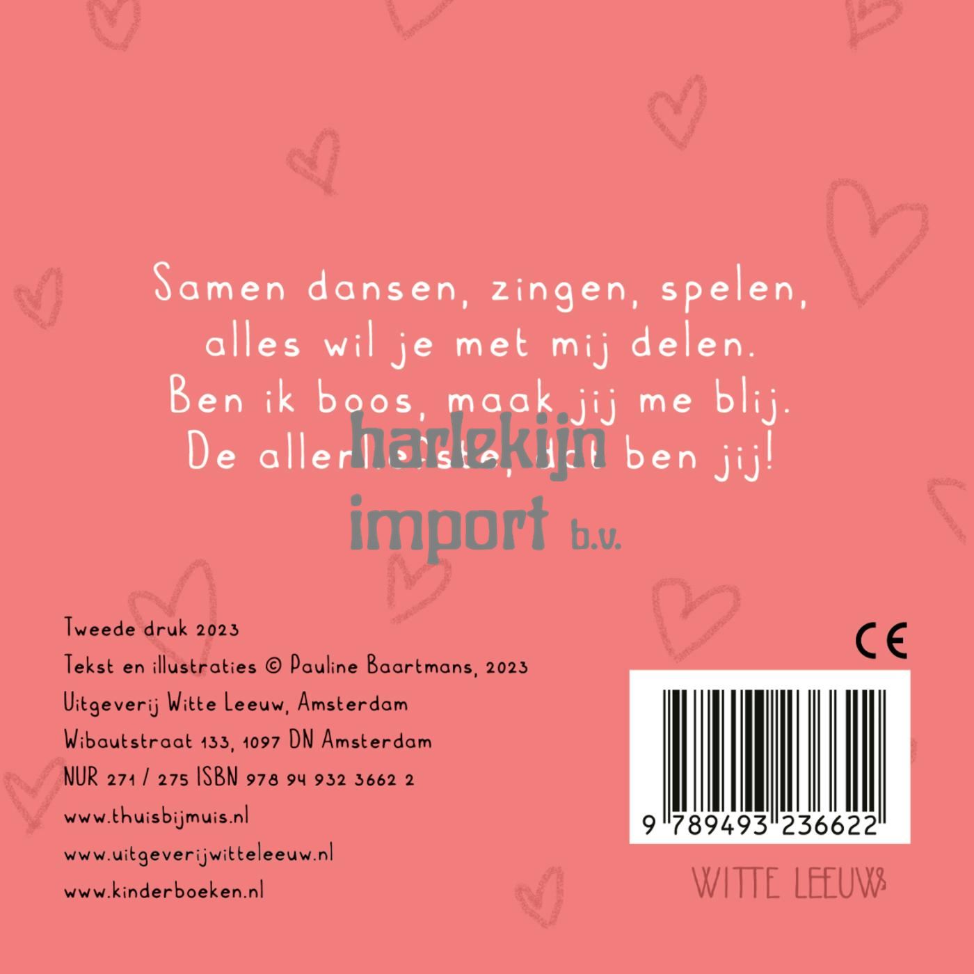 Samen dansen, zingen, spelen, alles wil jij met mij delen. Ben ik boos, maak jij me blij. De allerliefste, dat ben jij!
