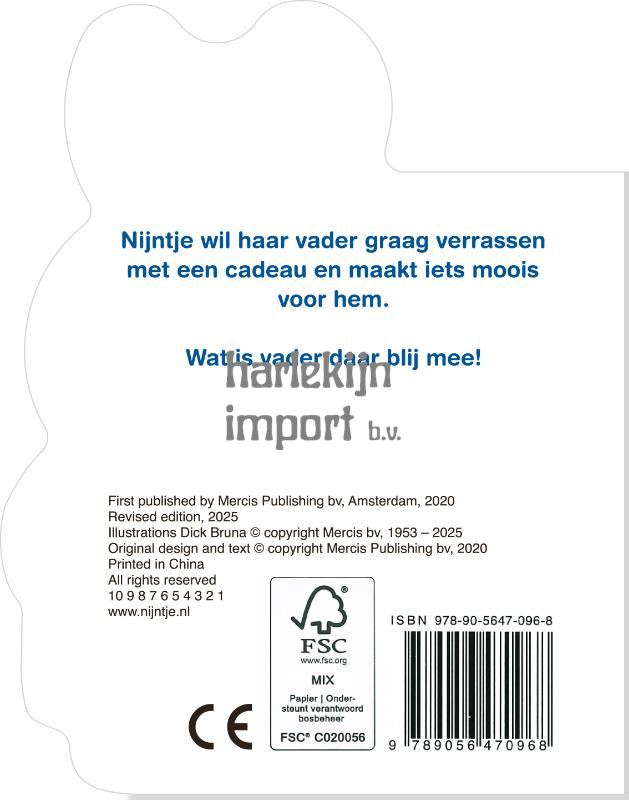 Nijntje en vader gaan er graag samen opuit. Als bedankje maakt nijntje een tekening voor vader. Een lief cadeauboekje voor alle vaders en vaders in spé. Geschikt voor zowel Vaderdag als voor een verjaardag.