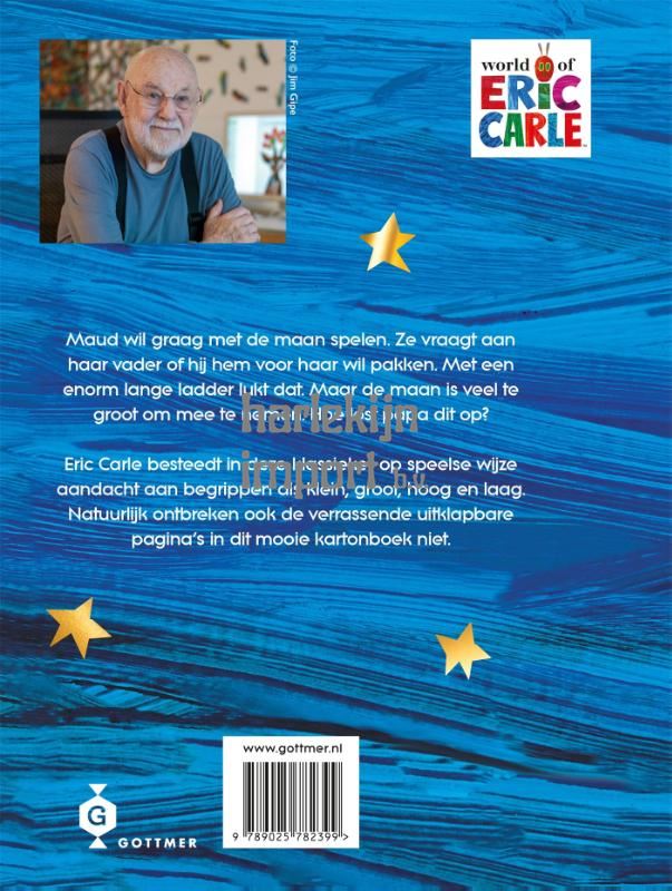 Dit gebonden kartonboek is een speciale jubileumuitgave van 'Papa, pak je de maan voor mij?' Deze prachtige klassieker, van de maker van 'Rupsje Nooitgenoeg' Eric Carle, gaat over begrippen als klein, groot, hoog en laag. In 2025 is het 40 jaar geleden dat het prentenboek 'Papa, pak je de maan voor mij?' verscheen. Het is uitgegroeid tot een favoriet slaapverhaaltje om voor te lezen aan kinderen. Natuurlijk ontbreken de vier verrassende uitklappers ook in deze mooie uitgave niet. Een meisje wil graag met de maan spelen. De maan is alleen heel hoog en zelf is ze te klein om erbij te kunnen. Met een heel lange ladder lukt het papa wel, maar dan blijkt de maan te groot. Gelukkig wordt de maan elke nacht een beetje kleiner... 'Papa, pak je de maan voor mij?' is een verhaal van schrijver en tekenaar Eric Carle, die bekend is van zijn wereldberoemde klassieker 'Rupsje Nooitgenoeg'. Zijn heldere collage-illustraties spatten ook in dit prentenboek van de pagina's af. 'Papa, pak je de maan voor mij?' is een boekje voor kinderen vanaf 2 jaar en natuurlijk ook een leuk cadeau voor Vaderdag!