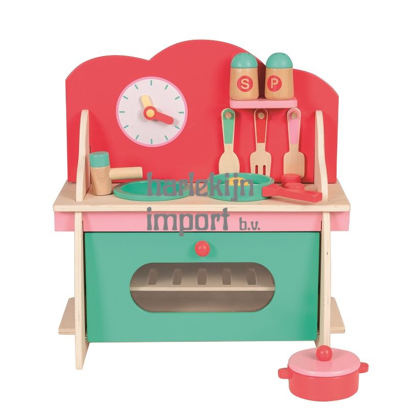 Keuken hout 36x17x38 met accessoires. 36x17x38 cm. 3+
