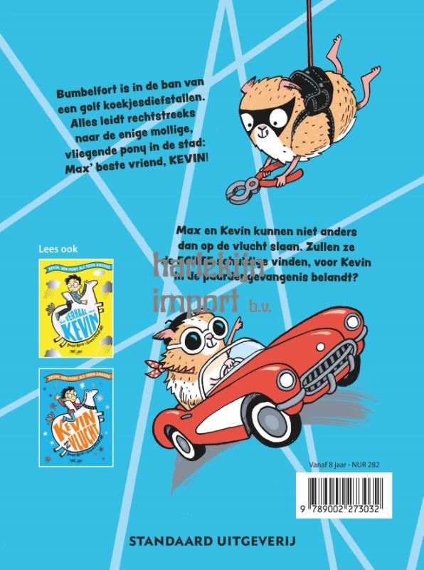 Bumbelfort wordt geteisterd door een reeks koekjesdiefstallen en alle sporen leiden naar de enige vliegende pony die het stadje rijk is: Max’ beste vriend Kevin! Max en Kevin slaan op de vlucht. Kunnen ze de echte schuldige ontmaskeren voor Kevin in de ponygevangenis belandt? Dit is het derde boek in de reeks rond de schattige Pony Kevin en zijn beste vriend Max.