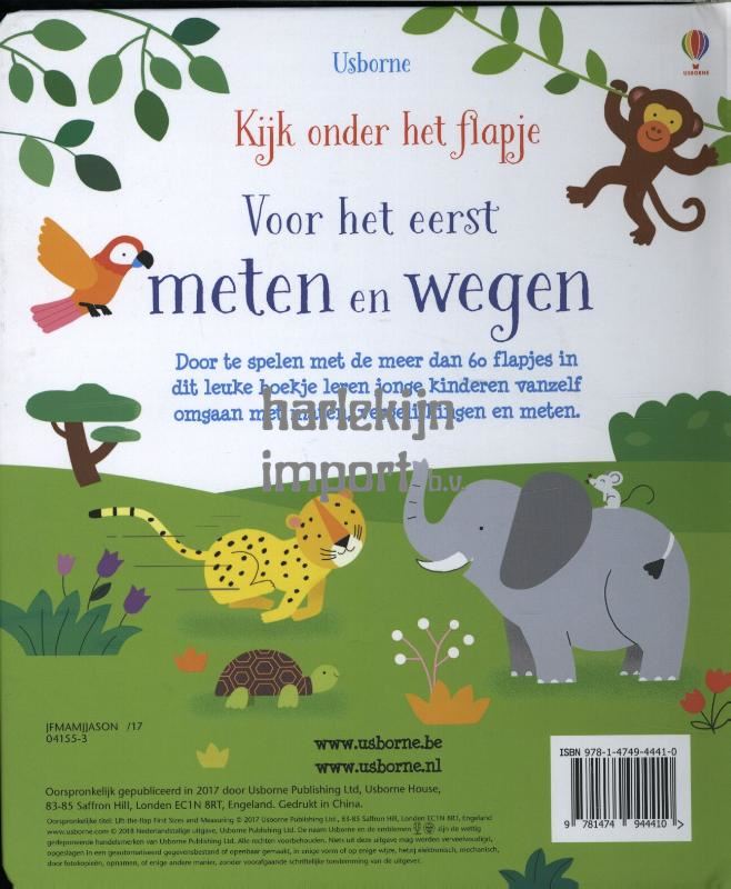 Door te spelen met de meer dan 60 flapjes in dit leuke boekje leren jonge kinderen vanzelf omgaan met maten, vergelijkingen en meten.
