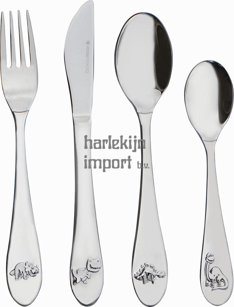 Omschrijving Kinderbestek - 4 delig - Dino - Zilver RVS