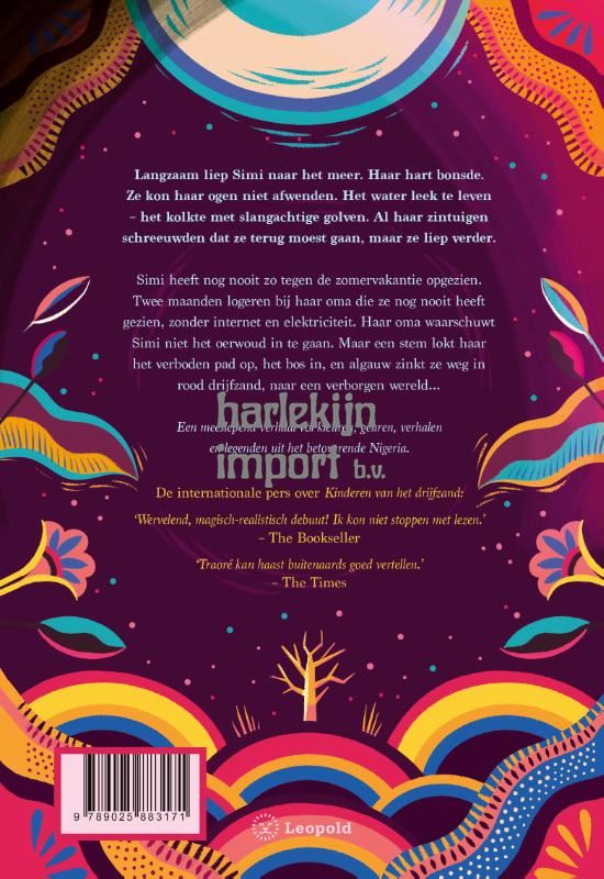 Simi heeft nog nooit zo tegen de zomervakantie opgezien. Twee maanden logeren bij haar oma die ze nog nooit heeft gezien, zonder internet en elektriciteit. Haar oma waarschuwt Simi niet het oerwoud in te gaan. Maar een stem lokt haar het verboden pad op, het bos in, en algauw zinkt ze weg in rood drijfzand, naar een verborgen wereld…