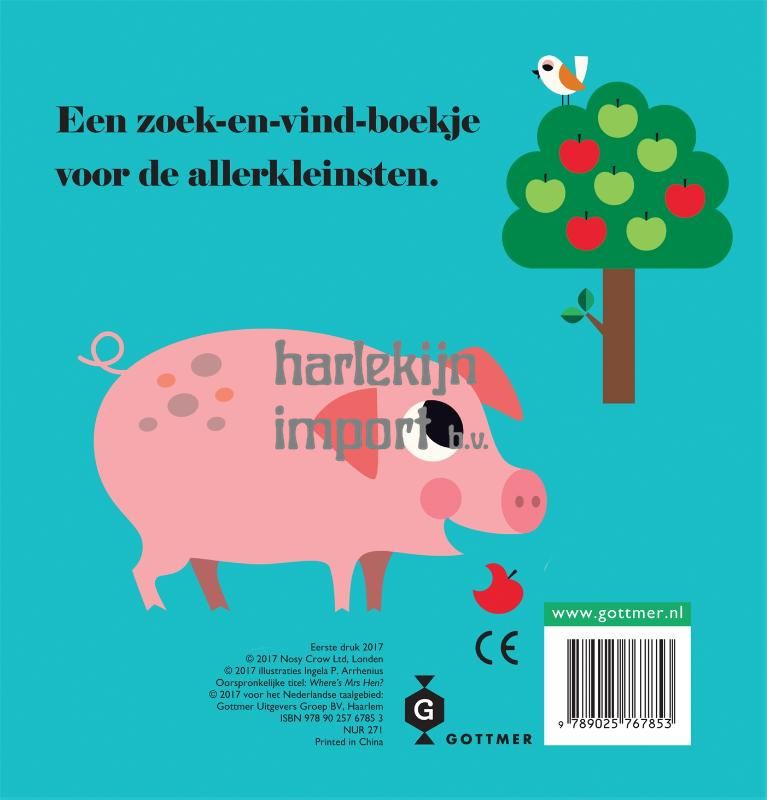 Peuters zijn dol op boeken met flapjes. Onder de flapjes van dit boek zitten allerlei boerderijdieren verborgen, zoals een koe, een varken en natuurlijk een kip. Extra leuk is dat de flapjes van vilt zijn gemaakt: lekker zacht én stevig dus!