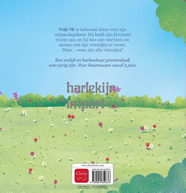 Vosje Vic is helemaal klaar voor zijn verjaardagsfeest. Hij heeft zijn favoriete truitje aan, en hij kan niet wachten om samen met zijn vriendjes te vieren. Maar … waar zijn alle vriendjes? Een vrolijk en herkenbaar prentenboek over jarig zijn. Voor feestneuzen vanaf 3 jaar.