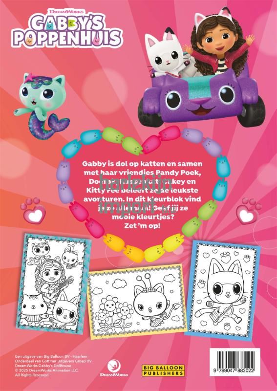 Ken jij Gabby en al haar vriendjes uit 'Gabby's Poppenhuis' al? Ze is dol op katten en haar beste vriendje is Pandy Poek. Samen met andere vriendjes zoals Doerak, Kussenkat, Cakey en Kitty Fee beleeft ze de leukste avonturen. In 'Kleur mee met Gabby kleurblok' staan heel veel leuke kleurplaten van Gabby en haar vriendjes. Breng je fantasie tot leven met je regenboogkleurige potloden, magische stiften of betoverende verf! Gabby's Poppenhuis, een geliefde Netflix-serie voor peuters, biedt een boeiende mix van live-action en animatie. Volg Gabby en haar magische poppenhuis door een kleurrijke omgeving gevuld met sprekende poppen en speelgoeddieren. Deze serie smelt fantasie samen met educatieve elementen, waardoor kinderen worden aangemoedigd hun verbeelding te gebruiken en probleemoplossend te denken. Wat is er nou fijner dan een middagje kleuren aan de keukentafel? Met een kleurboek- of doeboek ontwikkelen kinderen niet alleen hun motoriek, maar wordt ook hun creativiteit en fantasie ontwikkeld. En ze maken nog iets moois ook! Bekijk ook de rest van onze collectie kleurboeken en kleurblokken voor kinderen, van bekende karakters als L.O.L. Surprise, Bluey of Paw Patrol. Dat betekent nog meer kleurrijke avonturen en creatief plezier voor jonge kunstenaars.