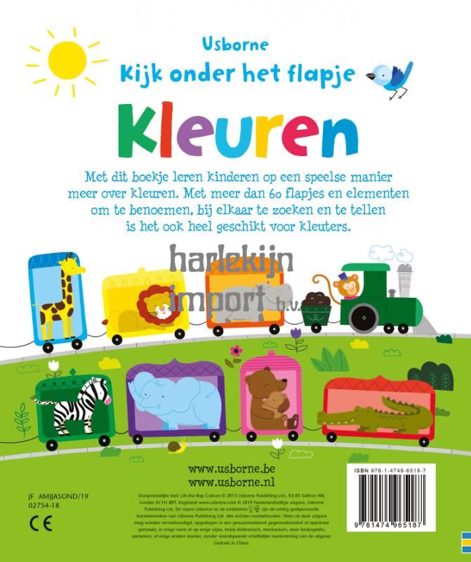 Kinderen leren op een leuke, boeiende manier over kleuren, met meer dan 60 flapjes om te openen. Met heel veel vragen om te beantwoorden en om over te praten is dit boek perfect om samen te lezen. Er zijn telactiviteiten en kleuren die benoemd moeten worden en bij elkaar moeten worden gezocht.