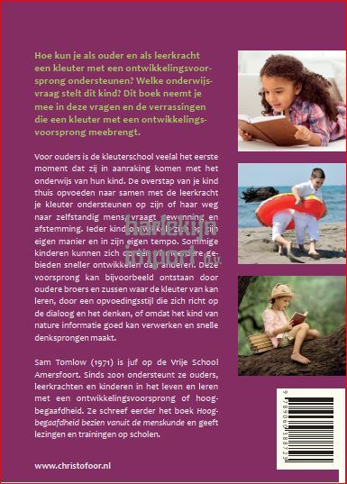 Voor ouders is de kleuterschool veelal het eerste moment dat zij in aanraking komen met het onderwijs van hun kind. De overstap van je kind thuis opvoeden naar samen met de leerkracht je kleuter ondersteunen op zijn of haar weg naar zelfstandig mens, vraagt gewenning en afstemming. Ieder kind ontwikkelt zich op zijn eigen manier en in zijn eigen tempo. Sommige kinderen kunnen zich op één of meerdere gebieden sneller ontwikkelen dan anderen. Deze voorsprong kan bijvoorbeeld ontstaan door oudere broers en zussen waar de kleuter van kan leren, door een opvoedingsstijl die zich richt op de dialoog en het denken, of omdat het kind van nature informatie goed kan verwerken en snelle denksprongen maakt. Hoe kun je als ouder en als leerkracht een kleuter met een ontwikkelingsvoorsprong ondersteunen? Welke onderwijsvraag stelt dit kind? Dit boek neemt je mee in deze vragen en de verrassingen die een kleuter met een ontwikkelingsvoorsprong meebrengt.