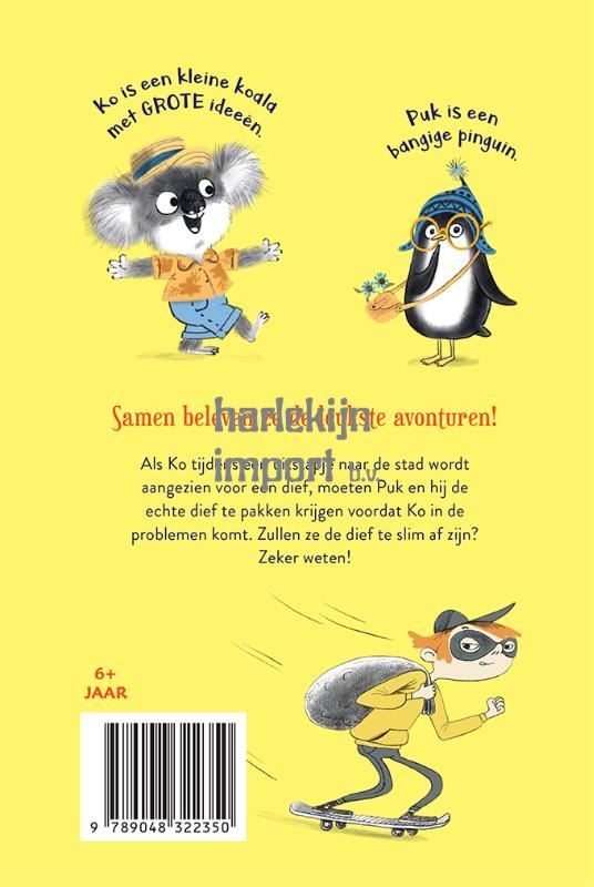 Ko is een kleine koala met GROTE ideeën. Puk is een bangige pinguïn. Samen beleven ze de leukste avonturen! Als Ko tijdens een uitstapje naar de stad wordt aangezien voor een dief, moeten Puk en hij de echte dief te pakken krijgen voordat Ko in de problemen komt. Zullen ze de dief te slim af zijn? Zeker weten! Leeftijd: 6+