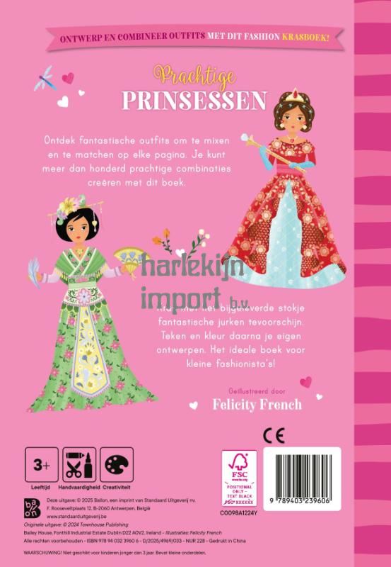 Ontdek fantastische outfits om te mixen en te matchen op elke pagina. Je kunt meer dan honderd prachtige combinaties creëren met dit boek. Kras met het bijgeleverde stokje fantastische prinsessenjurken tevoorschijn. Teken en kleur daarna je eigen ontwerpen. Het ideale boek voor kleine fashionista‘s!
