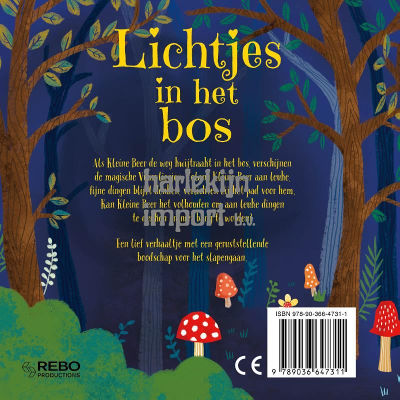 Als Kleine Beer de weg kwijtraakt in het bos, verschijnen de magische Vuurvliegjes. Zolang Kleine Beer aan leuke, fijne dingen blijft denken, verlichten zij het pad voor hem. Kan Kleien Beer het volhouden om aan leuke dingen te denken en niet bang te worden? Een lief verhaaltje met een geruststellende boodschap voor het slapengaan.