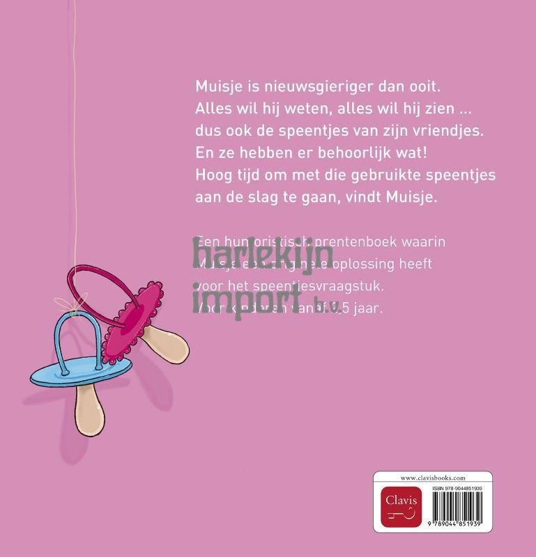 Muisje is nieuwsgieriger dan ooit. Alles wil hij weten, alles wil hij zien … dus ook de speentjes van zijn vriendjes. En ze hebben er behoorlijk wat! Hoog tijd om met die gebruikte speentjes aan de slag te gaan, vindt Muisje. Een humoristisch prentenboek waarin Muisje een originele oplossing heeft voor het speentjesvraagstuk. Voor kinderen vanaf 2,5 jaar.
