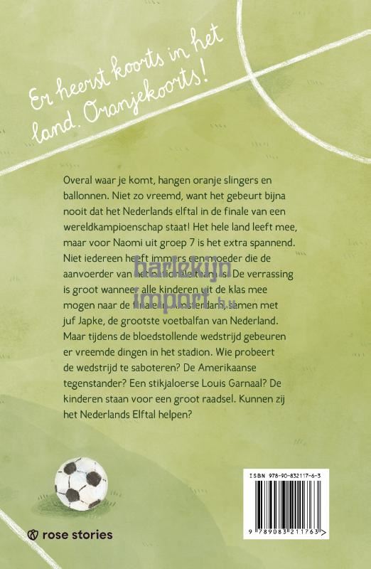 Er heerst koorts in het land. Oranjekoorts! Overal waar je komt, hangen oranje slingers en ballonnen. Niet zo vreemd, want het gebeurt bijna nooit dat het Nederlands elftal in de finale van een wereldkampioenschap staat! Het hele land leeft mee, maar voor Naomi uit groep 7 is het extra spannend. Niet iedereen heeft immers een moeder die de aanvoerder van het nationale team is. De verrassing is groot wanneer alle kinderen uit de klas mee mogen naar de finale in Amsterdam, samen met juf Japke, de grootste voetbalfan van Nederland. Maar tijdens de bloedstollende wedstrijd gebeuren er vreemde dingen in het stadion. Wie probeert de wedstrijd te saboteren? De Amerikaanse tegenstander? Een stikjaloerse Louis Garnaal? De kinderen staan voor een groot raadsel. Kunnen zij het Nederlands Elftal helpen?