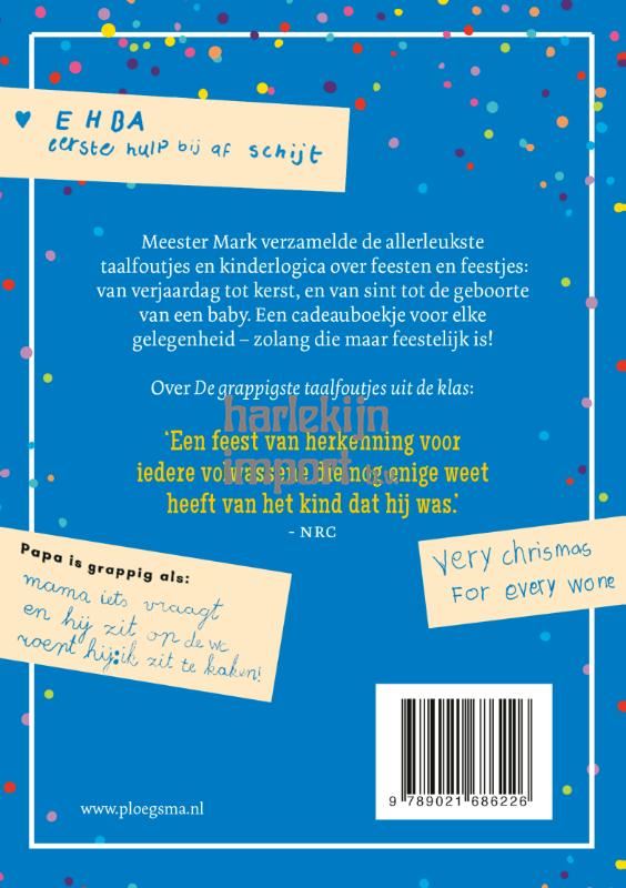 Meester Mark verzamelde de allerleukte taalfoutjes en kinderlogica over feesten en feestjes: van verjaardag tot kerst, en van sint tot de geboorte van een baby. Een cadeauboekje voor elke gelegenheid – zolang die maar feestelijk is!