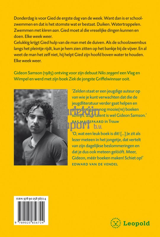 Donderdag is voor Gied de ergste dag van de week. Want dan is er schoolzwemmen en dat is het stomste wat er bestaat. Duiken. Watertrappelen. Zwemmen met kleren aan. Gied moet al die vreselijke dingen kunnen en doen. Elke week weer. Gelukkig krijgt Gied hulp.