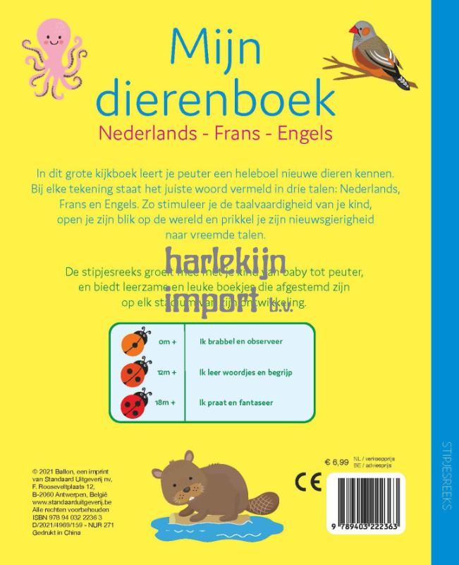 Mijn dierenboek, Nederlands, Frans en Engels. 1+ |