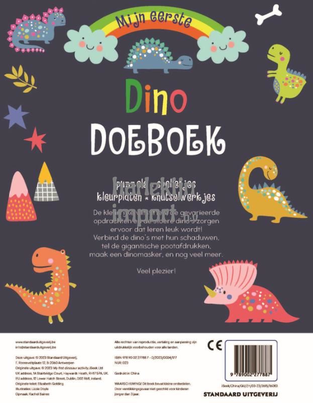 De kleurrijke viltstiften, de gevarieerde opdrachten en de stoere dino’s zorgen ervoor dat leren leuk wordt! Verbind de dino’s met hun schaduwen, tel de gigantische pootafdrukken, maak een dinomasker, en nog veel meer.